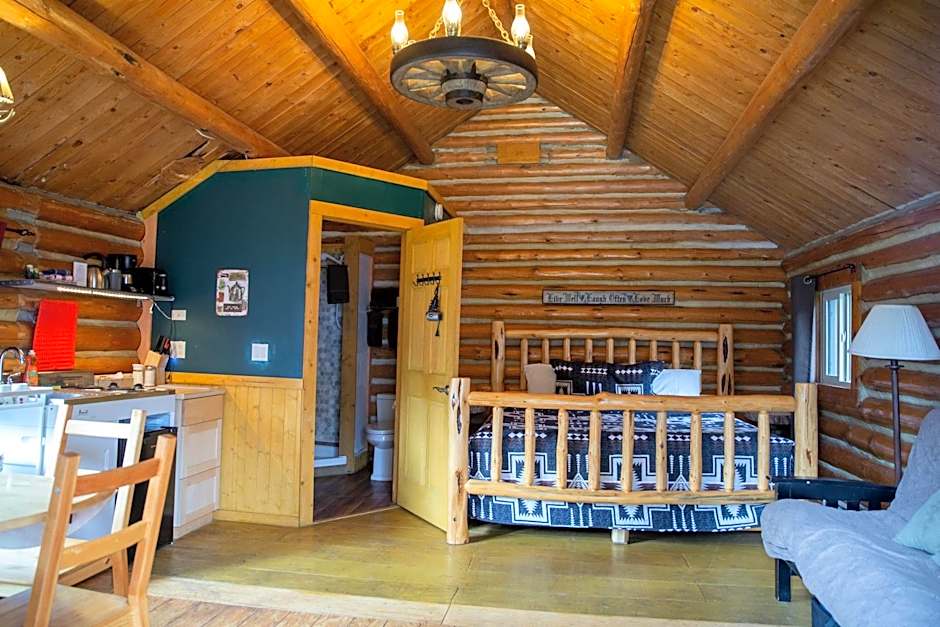 This open concept, rustic, one room log cabin has a kitchen and bathroom with shower. A flat-screen TV and satellite with 24 channels is included. Sorry, no air conditioning.