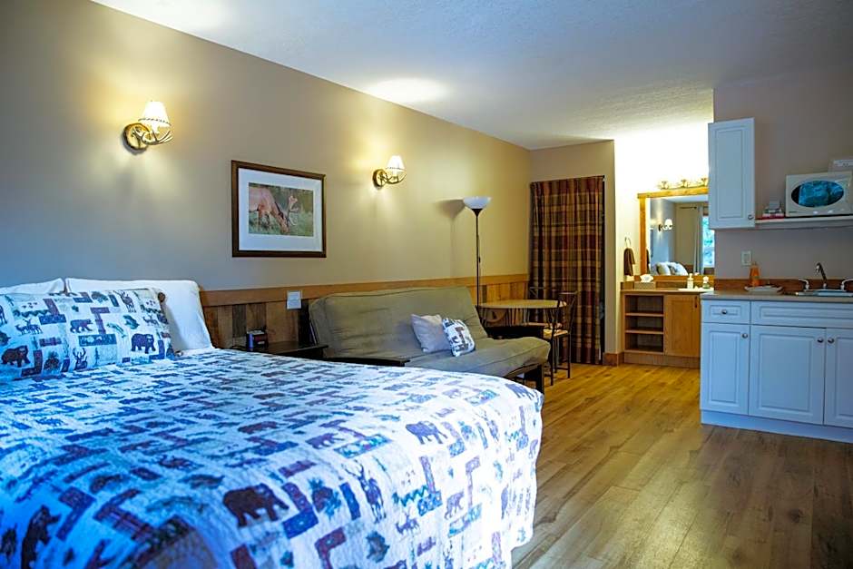 This open concept, rustic, one room log cabin has a kitchen and bathroom with shower. A flat-screen TV and satellite with 24 channels is included. Sorry, no air conditioning.